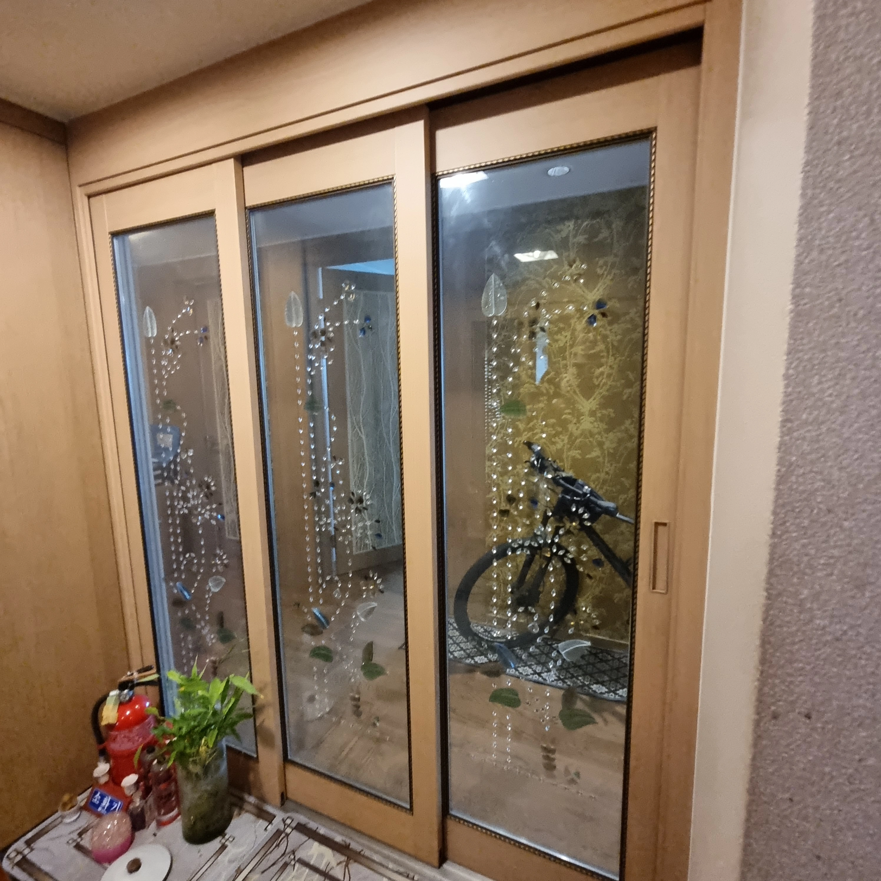 노후 아파트 중문 전체 교체. 기존 프레임을 활용해 도어만 새 제품으로 교체했습니다.